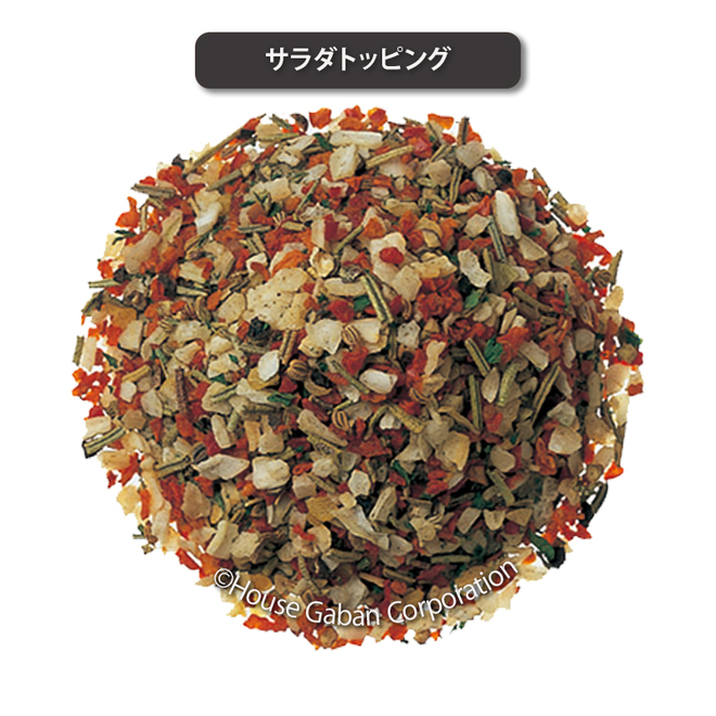 ブラックペッパー、レッドベル、ローズマリー、アジョワンなどを混合したトッピング用のミックススパイス。彩りと香りを生かして様々な料理に使用する。